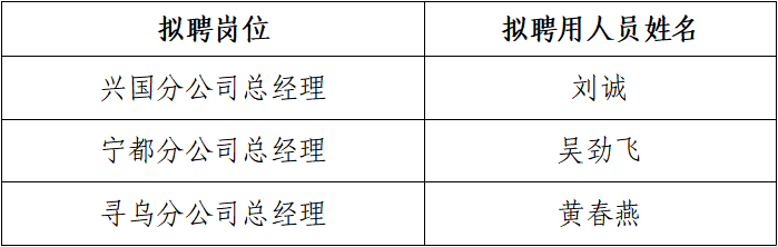 公示期為202391日至202395日,公示期間如有異議,請于20239517:00前向贛州市融資擔(dān)保集團(tuán)有限公司黨群工作部(人力資源部)口頭或書面反映,聯(lián)系方式:郵箱jsydbrsb@163.com,電話0797-8198816